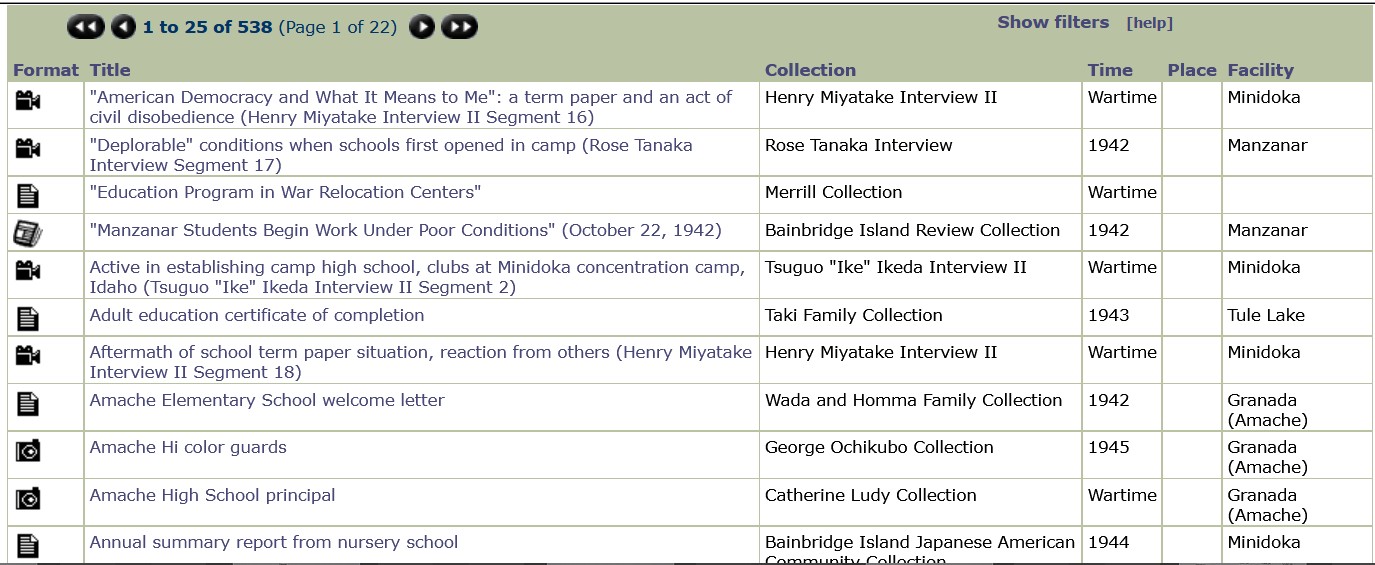 The Densho Digital Archive (archive.densho.org) launched in 2002 with 110 oral histories and 980 photographs and documents. It was free to use the site and download materials, but it did require users to register and log in. The site is no longer available but can still be seen in Internet Archive’s Wayback Machine.
