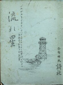 The prisoner population at Crystal City also included Issei arrested under the Alien Enemies Act in Hawai`i. Among those from the Japanese Hawaiian community was Dr. Motokazu Mori, a Honolulu-based physician who was an avid poetry writer and member of several Hawaiian literary clubs. Arrested by the FBI after the war broke out, Dr. Mori was detained at Sand Island and several other prisons on the US mainland. He was eventually reunited with his wife, Dr. Ishiko Shibuya Mori, at Crystal City in August 1943. Together, they formed a tanka poetry club called Tekisasu Shisha, with another Hawaiian Issei named Sojin Takei, an accomplished writer and poet who had worked as principal of the Keahua Japanese School on Maui before the war. They held regular meetings of the Tekisasu Shisha with other internees and toward the end of the war, Mori and Takei compiled an anthology collection of poems written by their club. Titled Nagareboshi (shooting star), the anthology was published in camp using a mimeograph shortly before Dr. Mori returned to Hawai`i in December 1945. At least two known copies survive in the archives of University of Hawai`i at Manoa Library and the Japanese Cultural Center of Hawai`i.