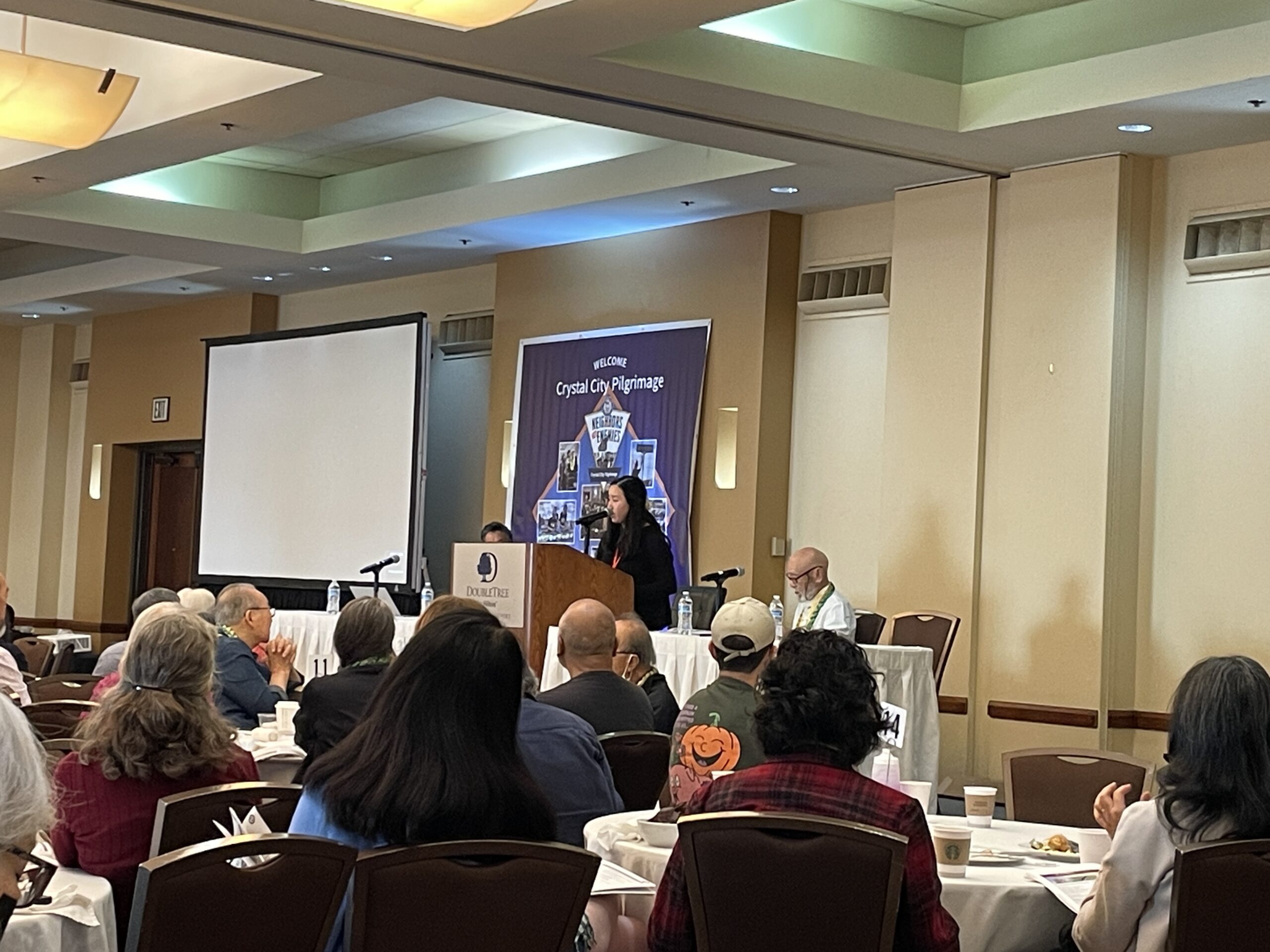 Pilgrimage co-chairs Hiroshi Shimizu, Brian Shibayama, and Gabi Nakashima—representing three generations of the incarceration experience—opened the program with remarks reflecting on family and legacy. Shimizu, a former incarceree who was a child at Crystal City, was joined by Shibayama, son of Art Shibayama, and Nakashima, granddaughter of a former incarceree.