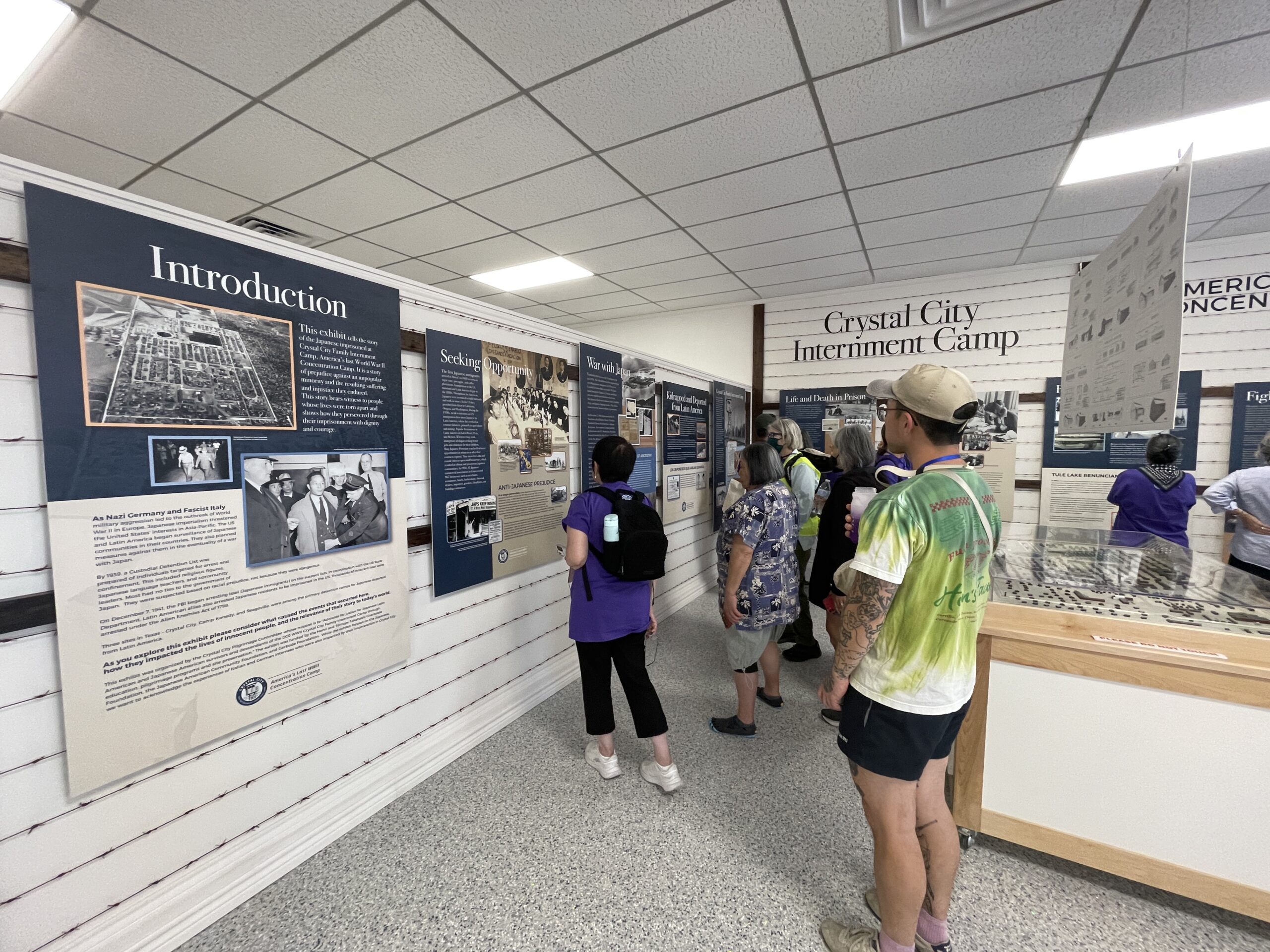 Pilgrims view the Crystal City Internment Camp exhibit at the My Story Museum—the first permanent history museum in Crystal City, Texas. The museum features exhibits on the 1969 student walkouts and the Chicano Movement, local veterans, and on the camp. During the pilgrimage, the Crystal City Pilgrimage Committee unveiled an expansion of the camp exhibit, America’s Last WWII Concentration Camp, deepening public understanding of this history and its lasting impact.