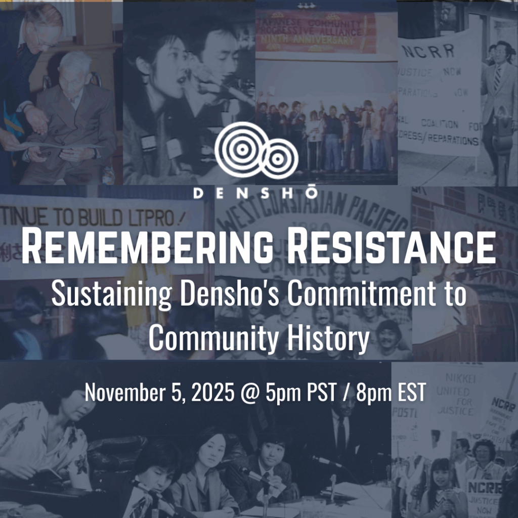 Join Densho for our 2025 Virtual Fundraiser, Remembering Resistance: Sustaining Densho's Commitment to Community History. Tune in on November 5th, 5pm PT / 8pm ET for an evening of dialogue, reflection, and visioning as we honor the legacy of the Japanese American Redress Movement and explore its ongoing relevance today.
